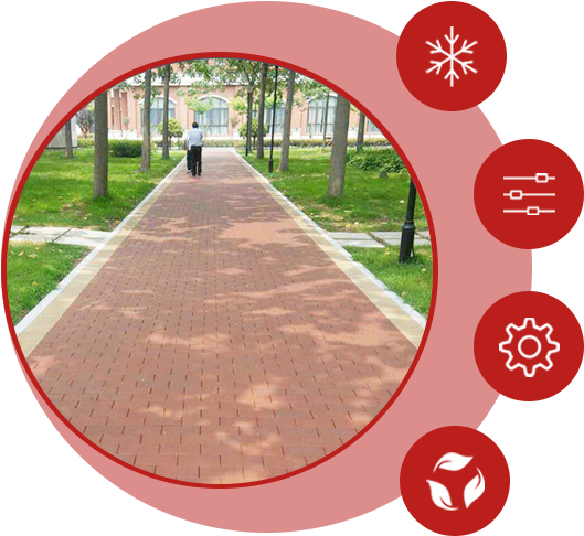 有優(yōu)異的吸水性能,并且表面并沒有想象中的光滑,下雨后雨水進入磚體,粗糙的表面可以給行人和車有較好的摩擦力,使其在雨后有出色的防滑效果。